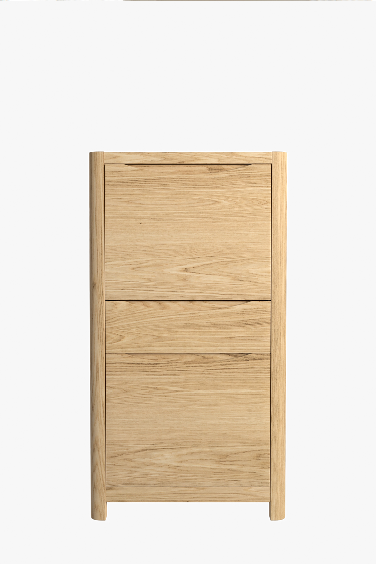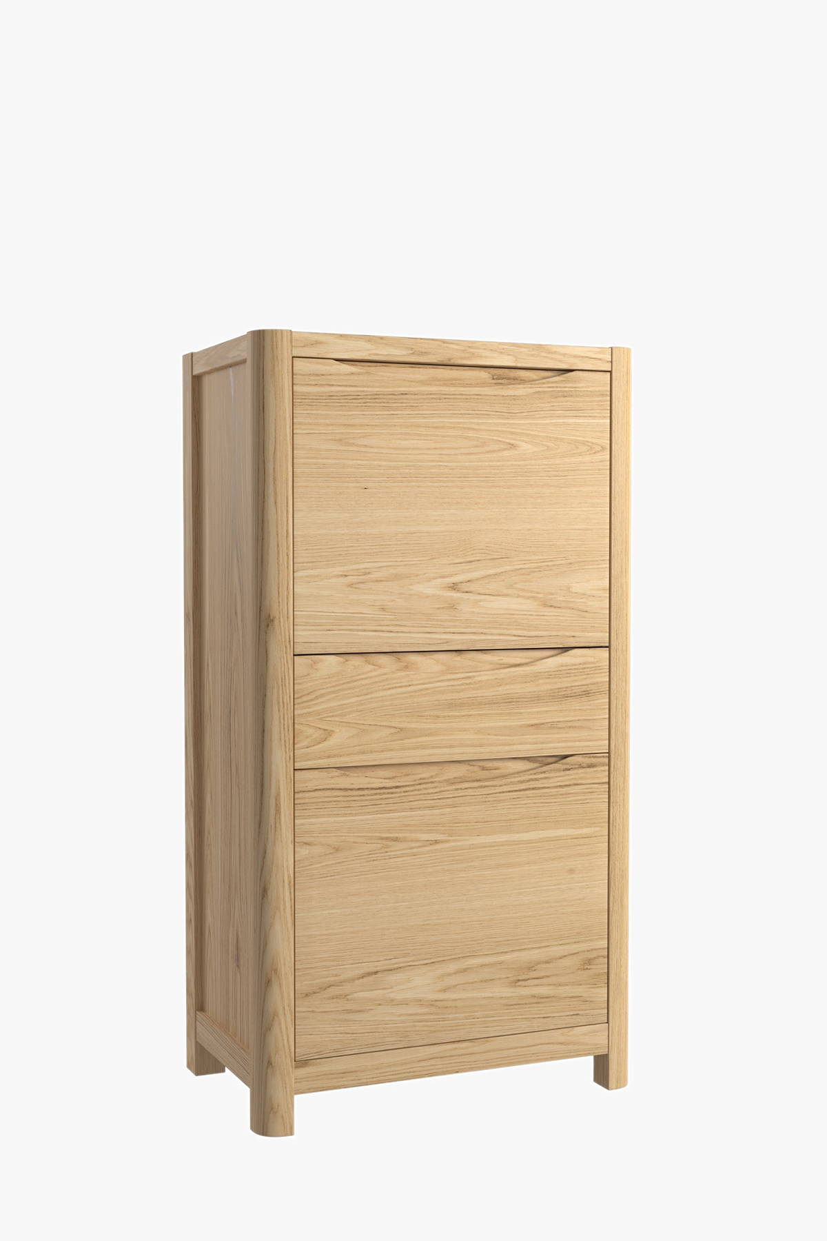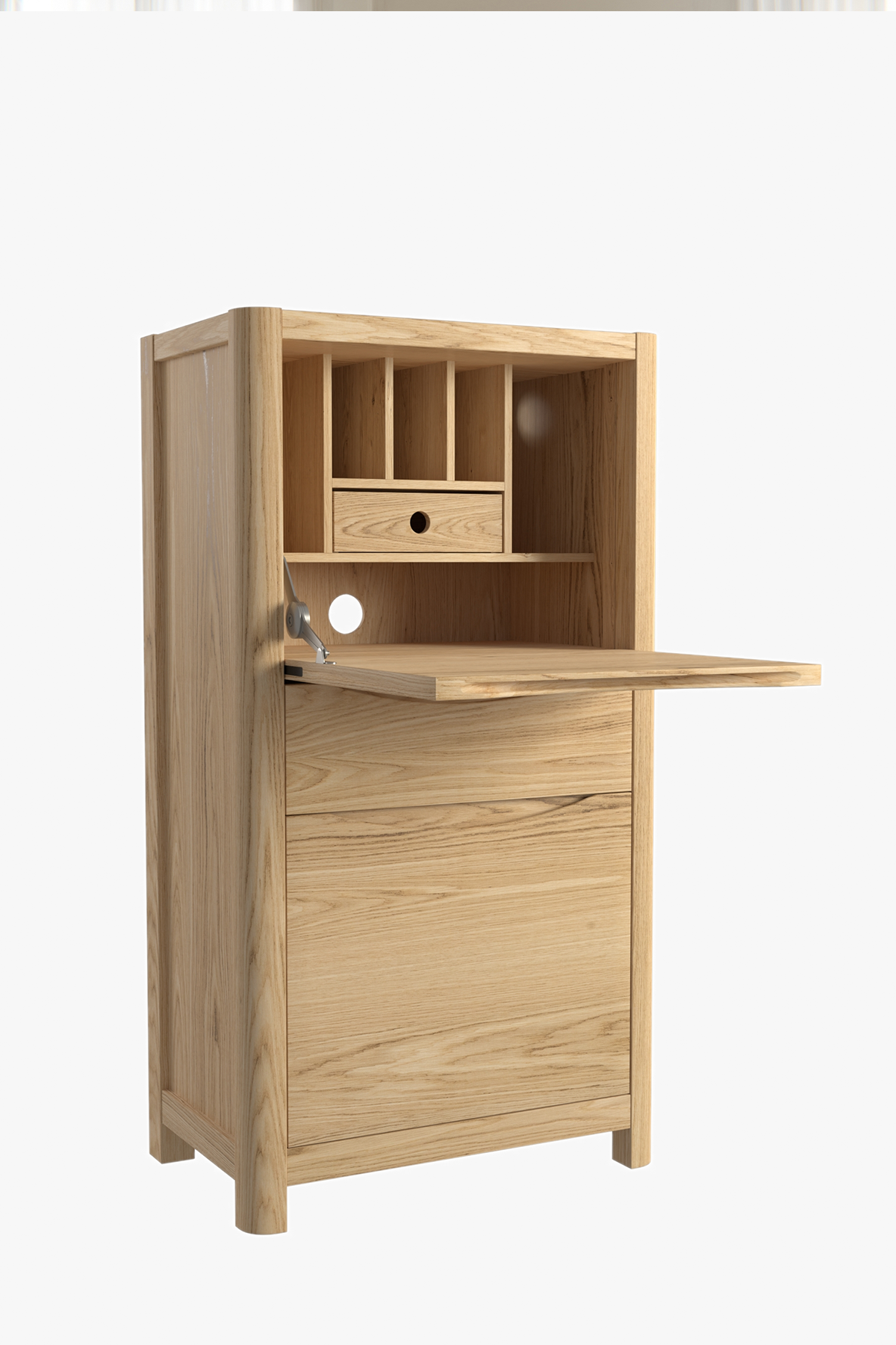 British designs crafted in the finest European oak and oak veneers. Designed without compromise, the collection exudes quality through subtle detailing including soft rounded corners and swept elliptical features. A bureau which offers a perfect storage solution for all your household documents. The cabinet boasts a good size storage cupboard with shelf. A central drawer and a writing section with a dropdown fall. Metal soft close drawer runners are fitted on all designs ensuring the drawers glide easily and close softly.