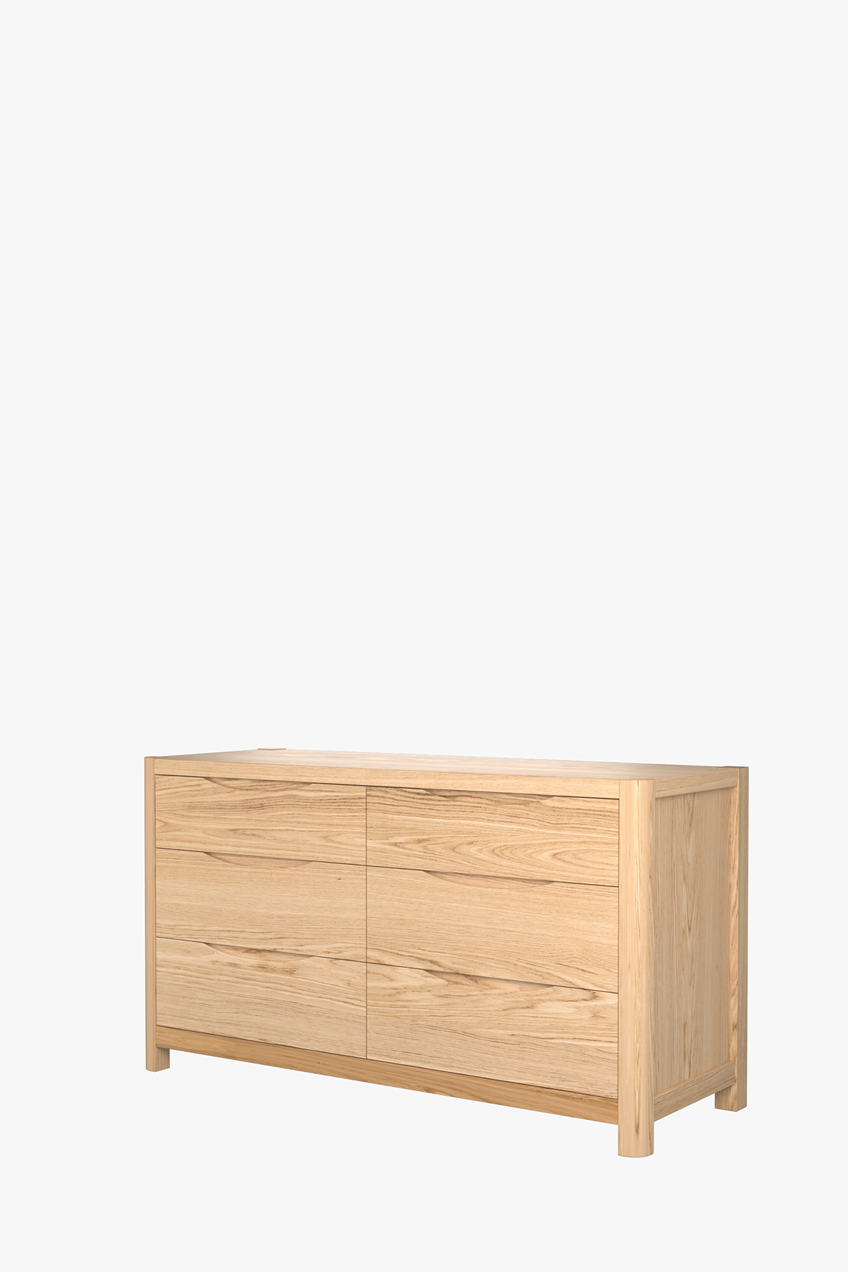 British designs crafted in the finest European oak and oak veneers. Designed without compromise, the collection exudes quality through subtle detailing including soft rounded corners and swept elliptical features. Timeless modern designs crafted in fine solid oak and oak veneers. After selecting only the finest veneers we lay them horizontally and match them across all doors and drawers.