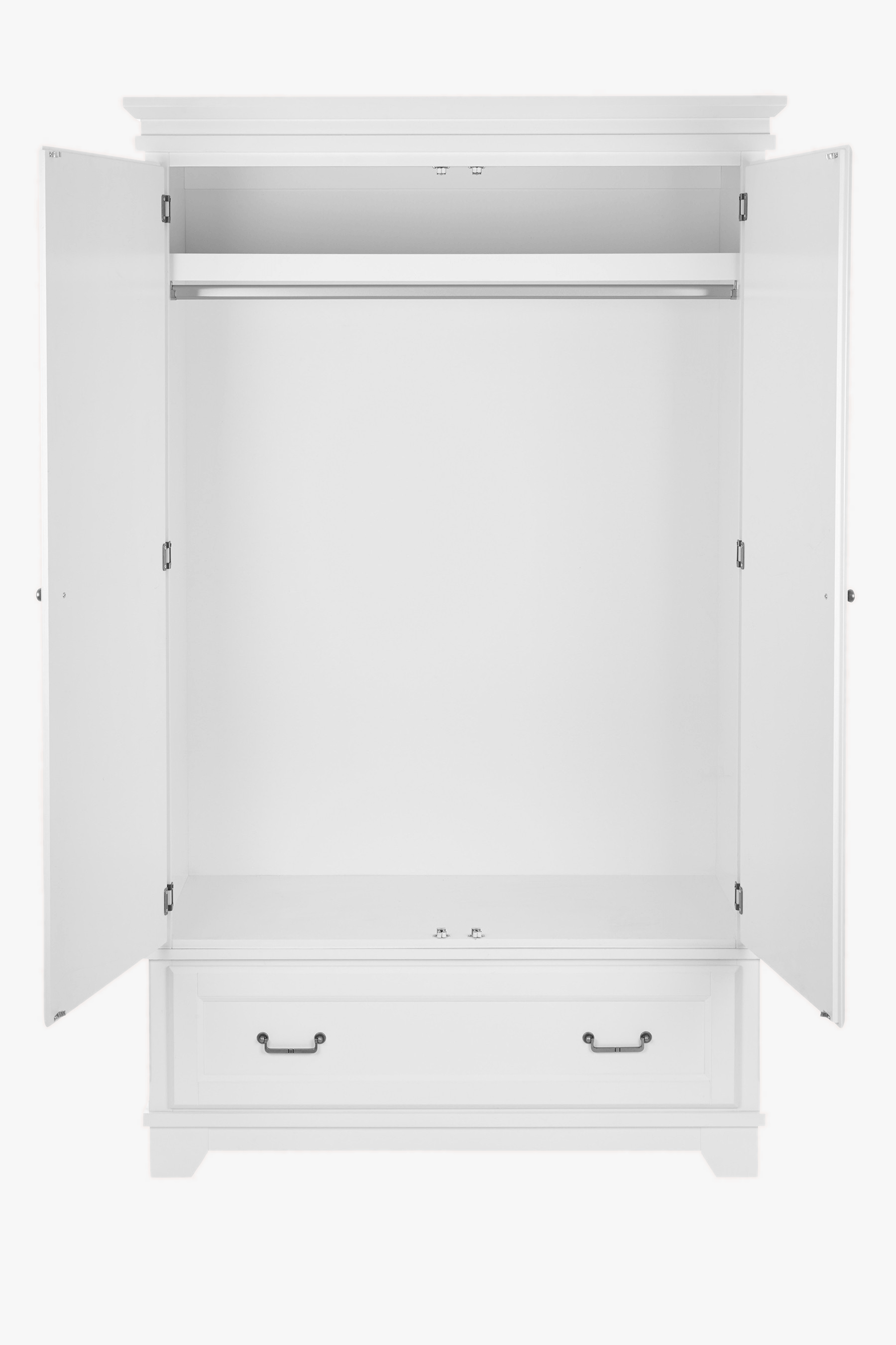 With a hand brushed painted and lacquered finish creating an informal yet stylish look, the Laura Ashley Devon 2 Door 1 Drawer Wardrobe works well in any bedroom. The wardrobe features a hanging rail as well as a fixed shelf and for added storage there is a deep drawer at the bottom. The look is completed with antiqued handles and knobs.
