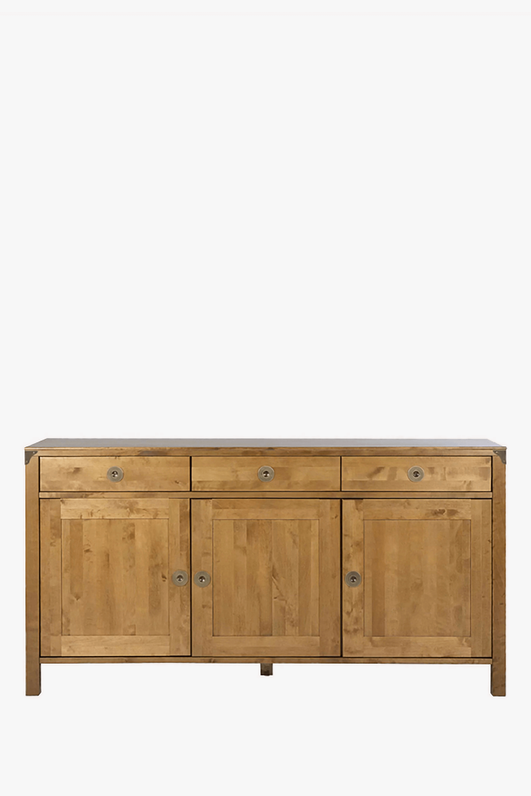 The Laura Ashley Balmoral 3 Door 3 Drawer Sideboard benefits from three drawers and three doors behind which are two adjustable shelves. The sideboard is crafted from a mix of solid birch and veneered birch elements and is lacquered for a low maintenance finish. Only the centre leg and the doors need to be attached to begin enjoying this piece; full assembly is not required.