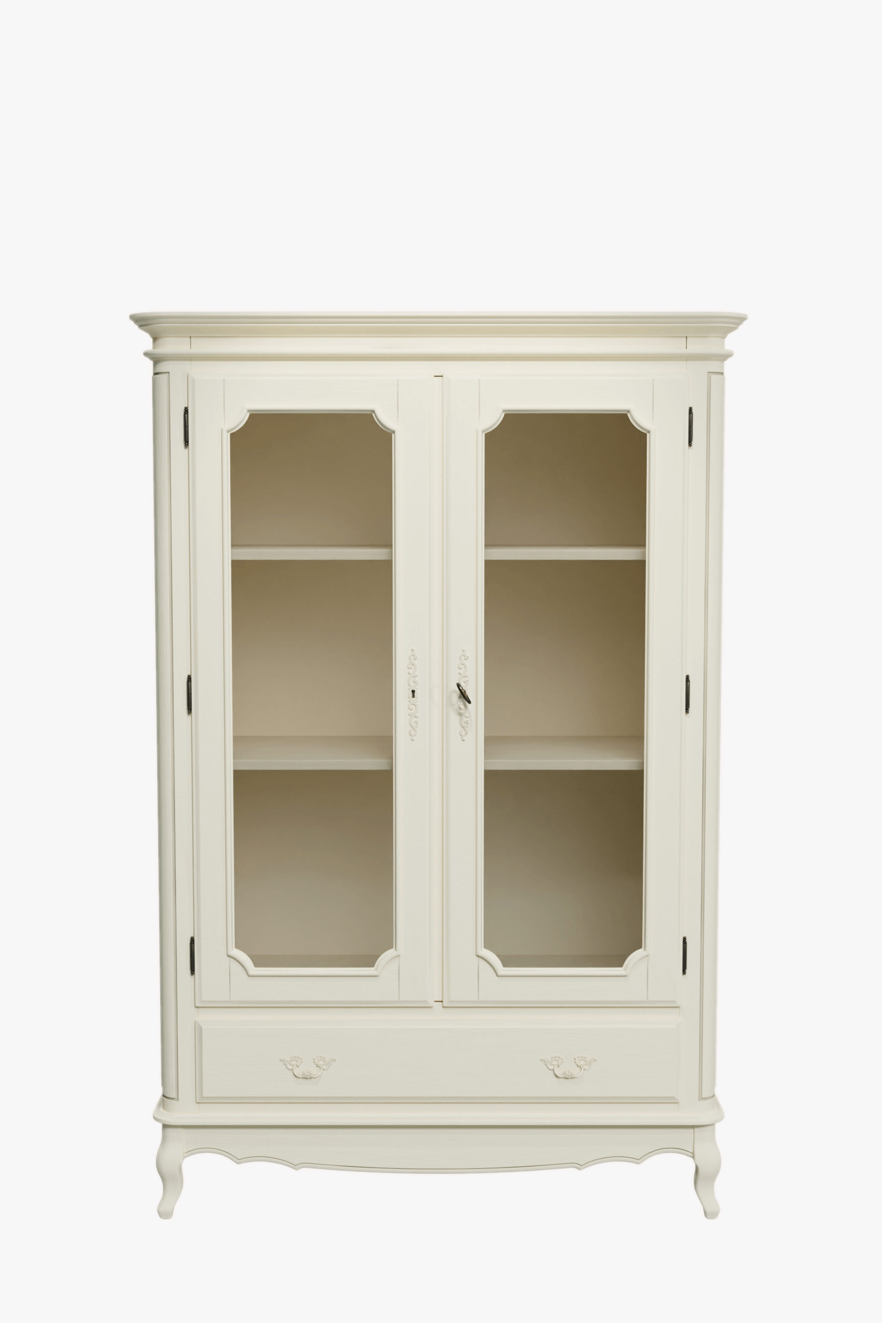 A beautiful centrepiece for either the bedroom or the living room, the Laura Ashley Provencale 2 Door 1 Drawer Armoire is the definition of practical sophistication. Two adjustable shelves are enclosed behind glazed doors featuring an espagnolette lock. In addition, a full width drawer is dressed with authentic florid handles particular to the style. The typical curved corners of the piece are further complemented by its tall and ornate cornice. All surfaces are finished with a durable yet unassuming paint and a delicately applied patina to selected edges and profiles. Only the legs need to be attached to begin enjoying this piece; full assembly is not required.