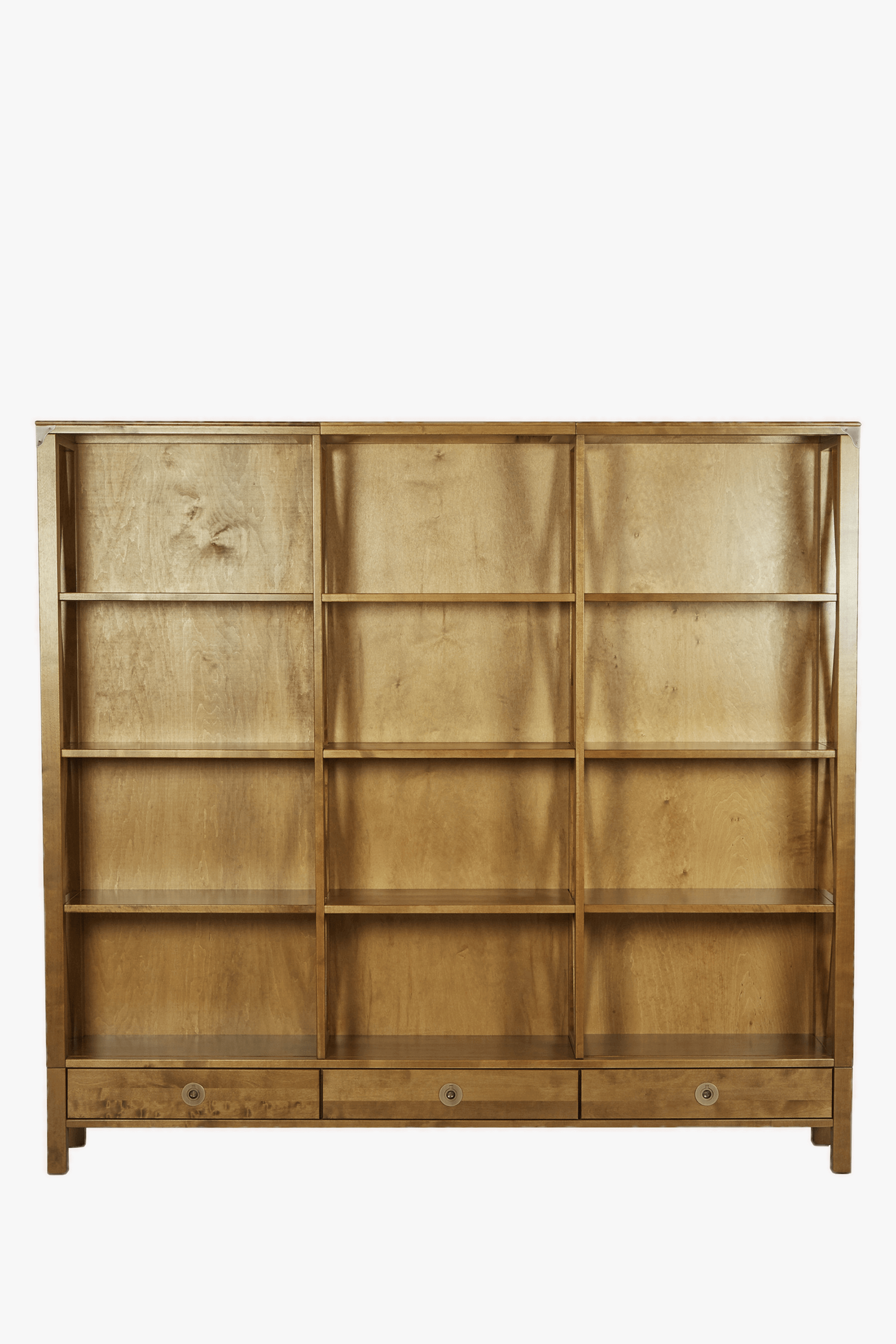 The Laura Ashley Balmoral 3 Drawer Double Bookcase features a distinctive cross design on each side and comprises three fixed shelves and two wide drawers.