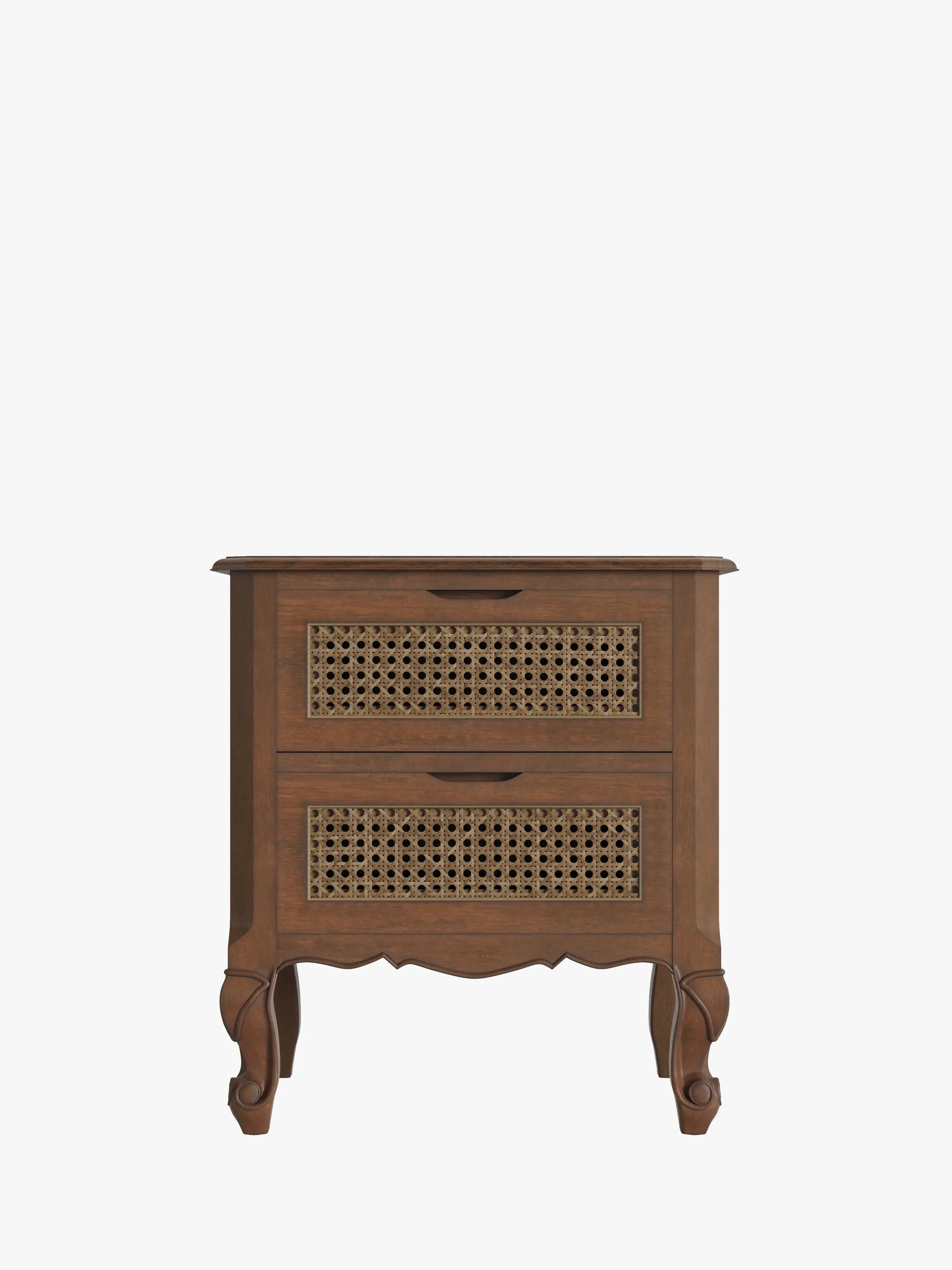 Inspired by elegant French styling the Laura Ashley Montpellier 2 Drawer Bedside Chest would grace any setting, be it downstairs or upstairs. This delightful chest is crafted from solid and veneered panels; offered in an aged walnut finish and features classic style detailing such as the cabriole legs as well as graceful curves so reminiscent of French classic styling. It has 2 well-sized drawers providing ample storage space and they are embellished with antique brass fittings.