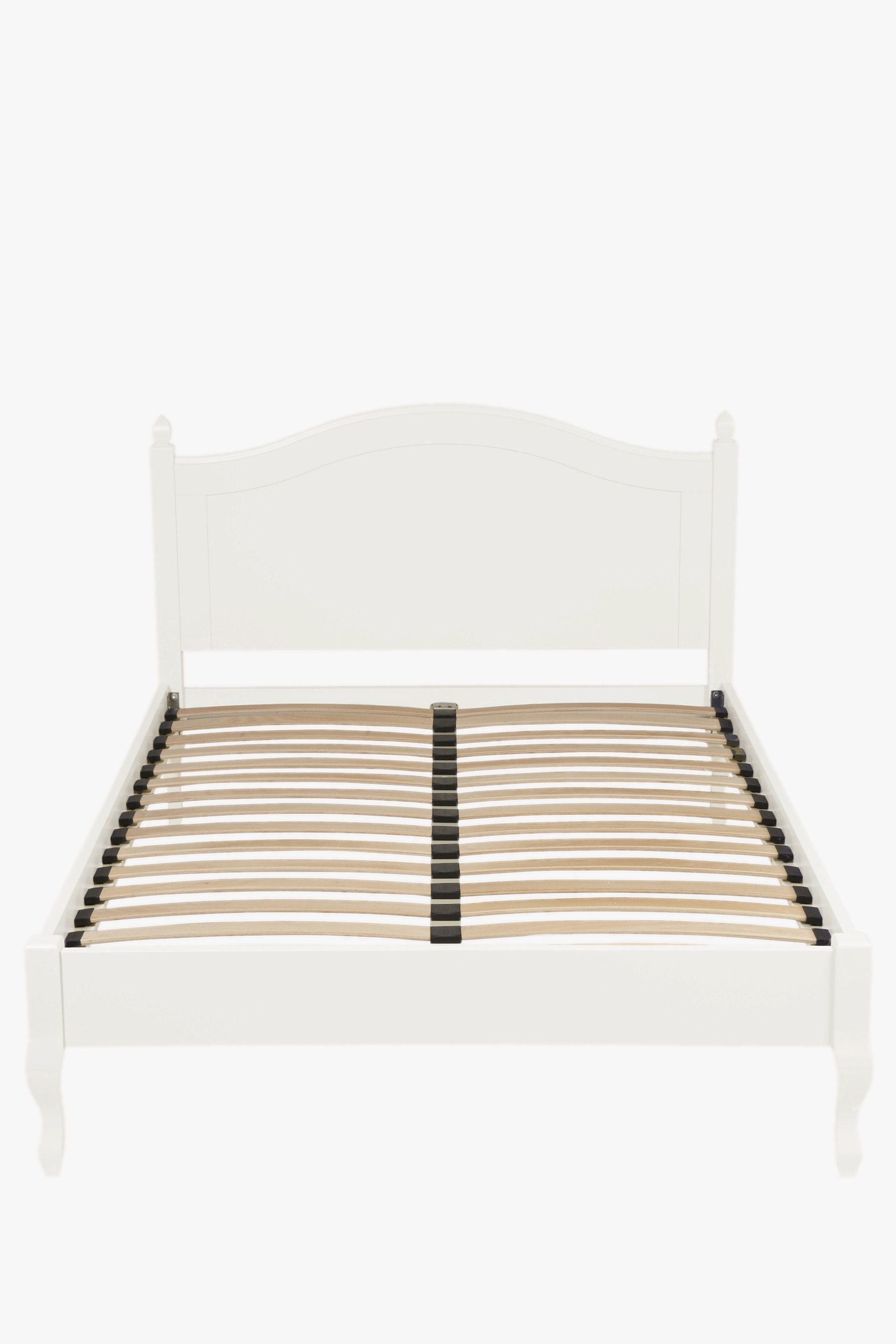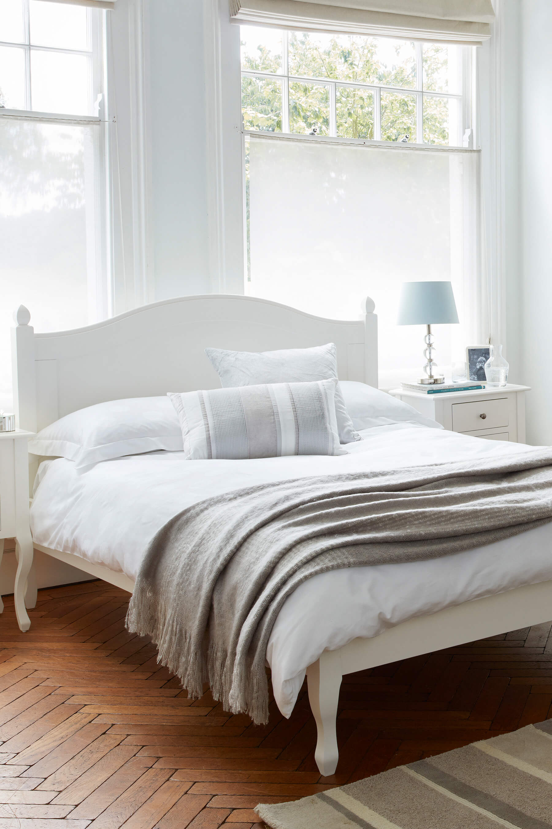 Finishing the room is the Laura Ashley Rosalind Bed Frame, beautifully complimenting the rest of the range. The bed features shaped legs and elegantly turned finials. In addition it uses sprung slats for a supportive and ventilated mattress base. The painted finish is complemented with solid oak rails on the head and footboards. All surfaces are given a graceful yet durable painted finish.